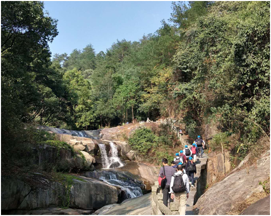 拜完大廟,我們開始了衡山之登。深秋的衡山,艷陽高照但并不炎熱,秋風習習,正是登高的好時節(jié)。我們沿著小道拾級而上,伴隨著泉水叮咚,一路上歡歌笑語,走著,看著,滿眼都是美景……