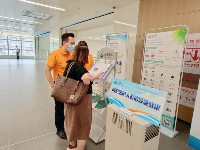 為保持潔凈空氣,呵護醫(yī)護人員的呼吸健康,億天凈化在設(shè)立的展位上展出了智能空氣凈化裝置、環(huán)境檢測儀器等產(chǎn)品,向?qū)<覍W(xué)者、行業(yè)大咖展示億天凈化創(chuàng)新領(lǐng)先的技術(shù)產(chǎn)品和扎實優(yōu)秀的落地經(jīng)驗。
