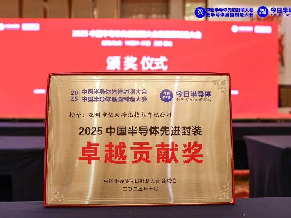 億天凈化作為半導(dǎo)體潔凈領(lǐng)域?qū)I(yè)企業(yè),全程深度參與大會,不僅以交流與分享的姿態(tài),與行業(yè)同仁共尋發(fā)展機遇,更憑借在半導(dǎo)體潔凈領(lǐng)域的突出成就與深度貢獻,一舉斬獲 “2025 中國半導(dǎo)體先進封裝卓越貢獻獎”,成為大會焦點之一。
