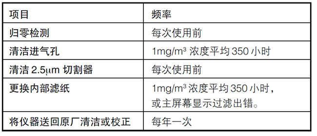 TSI 8530/8532粉塵儀需要定期維護保養。表 4-1 所列,為廠家建議的維修保養時間。